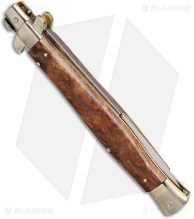 AGA Campolin 13" Burl Wood Automatic Knife Italian Stiletto (Bayonet Plain)