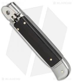 This 8″ Italian Stiletto from AKC comes in the Lever Lock Shot Puller style with an ebony wood handle and a flat grind blade. AKC specializes in collectible Italian stilettos made with traditional knife-making techniques. This 8″ Lever Lock model has an ebony wood handle with a sturdy stainless steel liner. Brass pins add a classic finishing touch to the design. Add classic Italian style to your collection with the AKC 8″ Lever Lock stiletto.