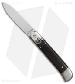 This 8″ Italian Stiletto from AKC comes in the Lever Lock Shot Puller style with an ebony wood handle and a flat grind blade. AKC specializes in collectible Italian stilettos made with traditional knife-making techniques. This 8″ Lever Lock model has an ebony wood handle with a sturdy stainless steel liner. Brass pins add a classic finishing touch to the design. Add classic Italian style to your collection with the AKC 8″ Lever Lock stiletto.