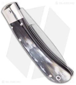 AKC specializes in collectible Italian stilettos made with traditional knife-making techniques. This Speed Hunter model has a dark/light horn handle with a sturdy brass liner. Silver pins and buttons add a classic finishing touch to the design. The blade comes in a drop point style with a plain edge and a polished finish. Add classic Italian style to your collection with the AKC Speed Hunter stiletto.