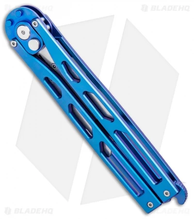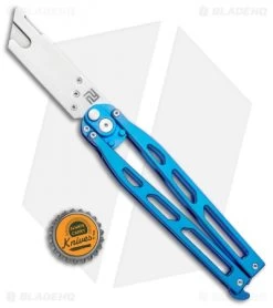This Kinetic-Tool model is outfitted with a stonewashed trainer blade and a blue titanium handle. The blade has a slot cut out to accommodate a standard utility razor blade.