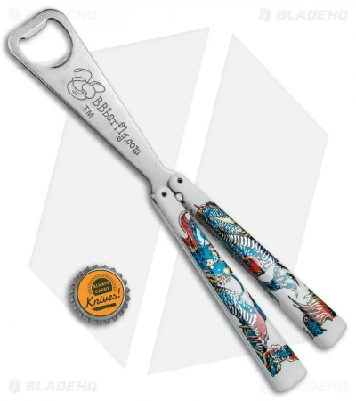 This BB Barfly model has a “Blue Dragon” handle and a satin finished bottle opener blade.