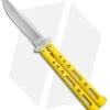 The Bear & Son 115 butterfly knife is built with durable white epoxy coated zinc handles with a skeletonized design for reduced weight. It features a 440 stainless steel blade with a black coating. This is a solid mid-range butterfly knife, made right here in the USA.