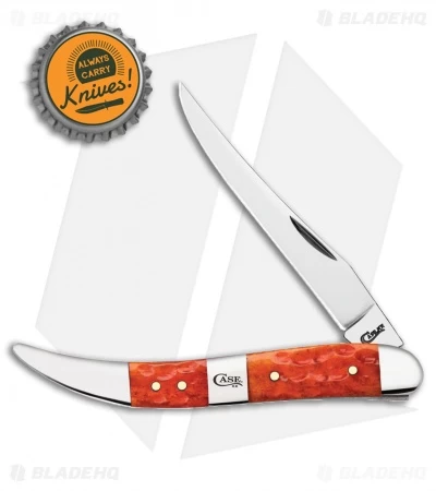 This Texas Toothpick model has a Tequila Sunrise Jigged Bone handle and a stainless steel blade. Add a classic pocketknife to your collection with the Small Texas Toothpick from Case Knives. This model has a clip point blade with a nail nick opener. Nickle silver bolsters and brass pins finish off the collectible design.