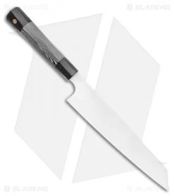 - Hight carbon stainless steel blades in a German knife style with a V-edge.