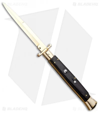This 11″ Italian Stiletto from Frank B. features classic stiletto style with an ebony handle and a gold finished dagger blade. Frank B creates some of the finest authentic Italian stilettos available on the market today. Add the premier Italian knife-maker to your collection today with an authentic Italian stiletto from Frank B.