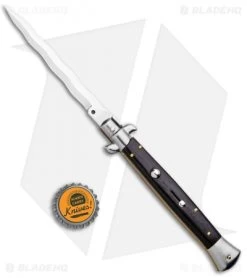 This 11″ Italian Stiletto from Frank B. features classic stiletto style with an ebony handle and a polished kris style blade. Frank B creates some of the finest authentic Italian stilettos available on the market today. This 11″ model has a ebony handle with nickel silver bolsters. Brass pins and liners add a classic touch to the design. Add the premier Italian knife-maker to your collection today with an authentic Italian stiletto from Frank B.