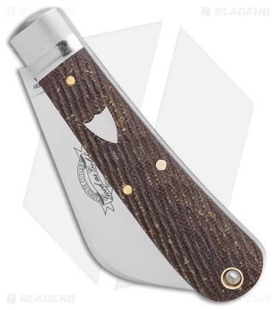 This GEC #47 Harvester pocket knife features a single blade pocket knife design and a micarta handle. It includes a modified hawkbill style blade. Nickel silver bolsters and brass liners add a classic flair to the design.