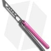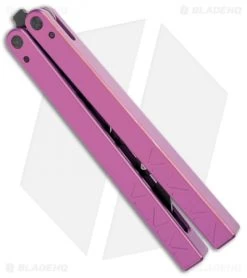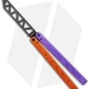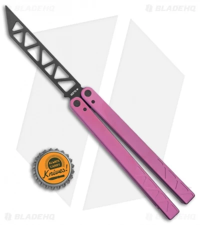 This Musk Purple balisong trainer features a black blade and light purple handles.