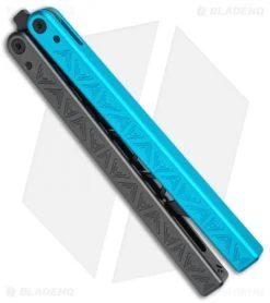 This Blade HQ Exclusive Original 3 balisong trainer features a black blade, one black handle, and one blue handle.