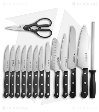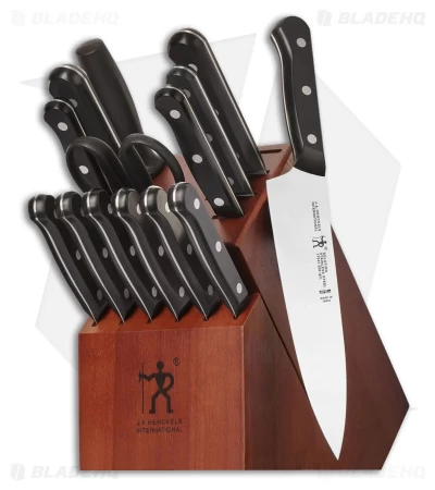 Maybe you just moved into a new place, or maybe you’re newly committed to cooking more often—for whatever you need, Henckels has the solution with the Solution 15-Piece Kitchen Knife Block Set! Set your kitchen up right with this set, which includes kitchen knives, steak knives, a sharpening steel, kitchen shears, and a 14-slot hardwood block. Each knife is made from high-quality stainless steel for rust resistance and has a traditional three-rivet style.