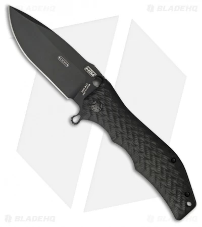 The HTM Gun Hammer is a spring assisted knife modeled after Darrel Ralph’s custom design. It has an ergonomic tactical (ETAC) grip handle, 3D machined from aircraft grade aluminum with a military Type III hard coat. The blade is premium CPM-S90V stainless steel with a DLC finish. Item comes with a padded black nylon pouch.