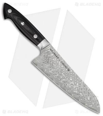 The Euroline 7″ Santoku Knife is a kitchen knife that will be your new favorite. The blade is made with a core of SG3 (a premium stainless powdered steel) and a shell of layered Damascus. The handle is made of black and brown layered micarta.