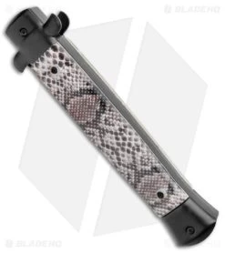 The Mago Italian Stiletto OTF knife has automatic double-action that shoots the blade in or out with one push. It has that old-time Italian feel, while boasting modern out-the-front automatic action. If you crave the old-fashioned stiletto look, but are looking for something with a more modern touch, this is the knife for you!