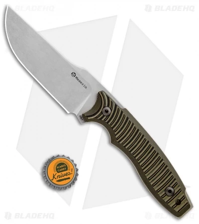 The Maserin L.E.O. offers a high performance fixed blade design for tactical or EDC use. This model is built with a stonewashed blade and a black and green G-10 handle. The full-tang blade has an extended tang for striking applications. Spine jimping along the thumb rest and an index groove provide a high performance grip for your toughest jobs. The blade is made from Bohler N690 steel with a long curved edge for versatile use. Item includes a fitted kydex sheath with dual leather belt loops.