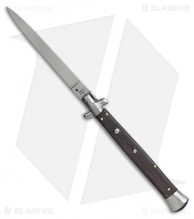 This 13″ Italian Stiletto from SKM Italy offers classic stiletto style with a staminawood handle and a satin finished blade. SKM makes a variety of Italian stilettos featuring traditional designs at an affordable price. This 13″ model has a wood handle with stainless steel bolsters. Brass pins and liners add a classic finishing touch to the piece. The blade has a flat grind with a plain edge and a satin finish. Experience the affordable Italian quality of these authentic stilettos from SKM Italy.