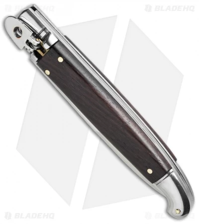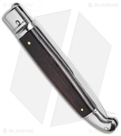 This 9.5″ Italian Stiletto from SKM Italy comes in the lever lock style with a dark wood handle and a bayonet blade. SKM makes a variety of Italian stilettos featuring traditional designs at an affordable price. This 9.5″ model has a wood handle with stainless steel bolsters and liners. Brass pins add a classic finishing touch to the piece. The bayonet blade has a plain edge and a satin finish. Experience the affordable Italian quality of these authentic stilettos from SKM Italy.