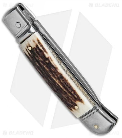 This 8″ Italian Stiletto from SKM comes in the Lever Lock style with a stag handle, stainless bolsters, and a flat grind blade. SKM specializes in collectible Italian stilettos made with traditional knife-making techniques. This 8″ Lever Lock model has a stag handle with a sturdy stainless steel blade. Brass pins add a classic finishing touch to the design. Add classic Italian style to your collection with the SKM 8″ Lever Lock stiletto.