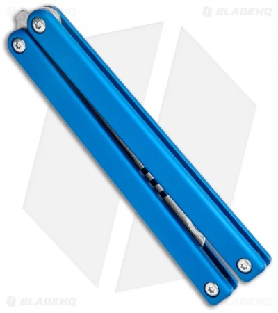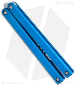 You’ve flipped butterflies, you’ve even flipped squids, but you’ve never flipped a shark. That’s right, this new Squid Industries Mako Bottle Opener Balisong Trainer is designed to look like a swimming shark! The cool, blue aluminum handles are strong and smooth, making for an extremely comfortable grip with high durability. With bronze washers, you will be flipping smoothly for hours. The blunt blade is stonewashed stainless steel that’s made to last.