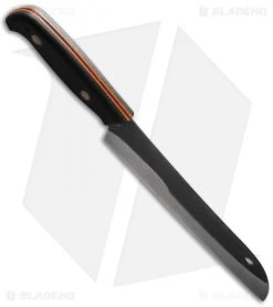 The Kiwi Santoku knife from Svord features a full-tang 15N20 high carbon steel blade for efficient cutting in the kitchen. This model has a black polypropylene handle with blue liner accents. The blade comes in a two-tone finish with black flats and satin grinds. Ships with a blade edge guard.