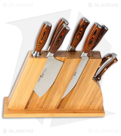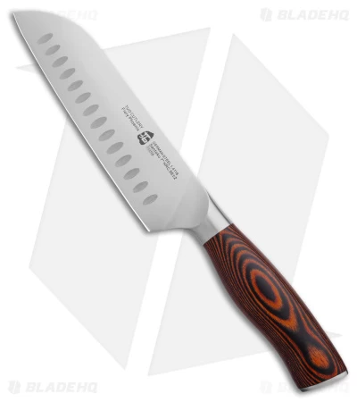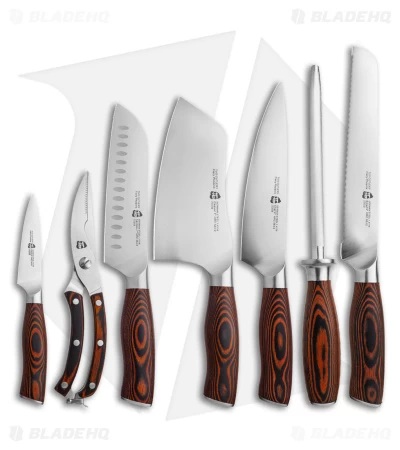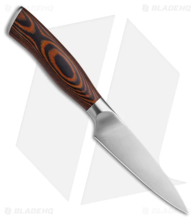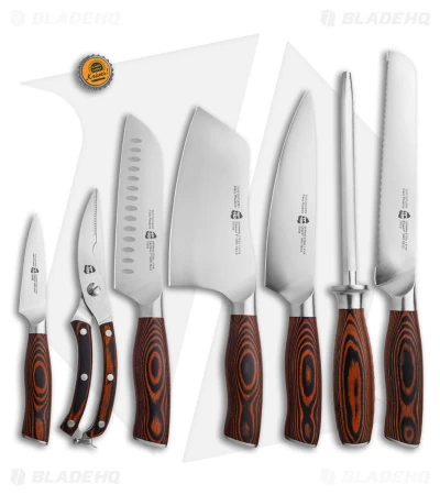 The Tuo Fiery Phoenix line stands out with bold style and excellent cutting capability. Each knife features orange and black pakkawood handles that are shaped for comfort. Their German stainless steel blades come wicked sharp, ready to process whatever food you need them to.