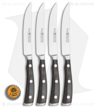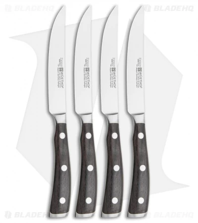 Improve your dining experience with a set of steak knives! This four-piece steak knife set from Wusthof features beautiful grenadill wood handles and quality steel blades.