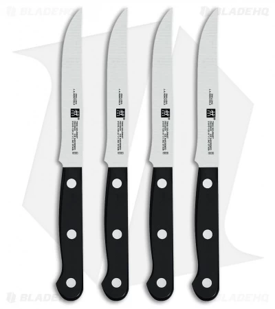 The Twin 4-Piece Serrated Steak Knife Set will fully equip your dining room for the next time you grill up steak. These knives are made by Zwilling J.A. Henckels, known for over a century for making quality knives.