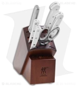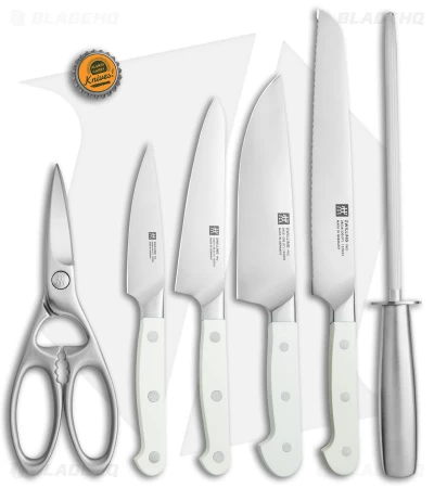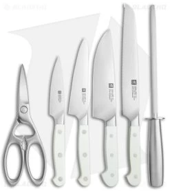 The Zwilling Pro Le Blanc marries style and function to bring the best to your kitchen. The knives in this series are made from ice-hardened stainless steel and are crafted in Germany. The handles feature white “Le Blanc” polymer scales with a classic three-pin build. Upgrade your kitchen knives in one fell swoop with this set!